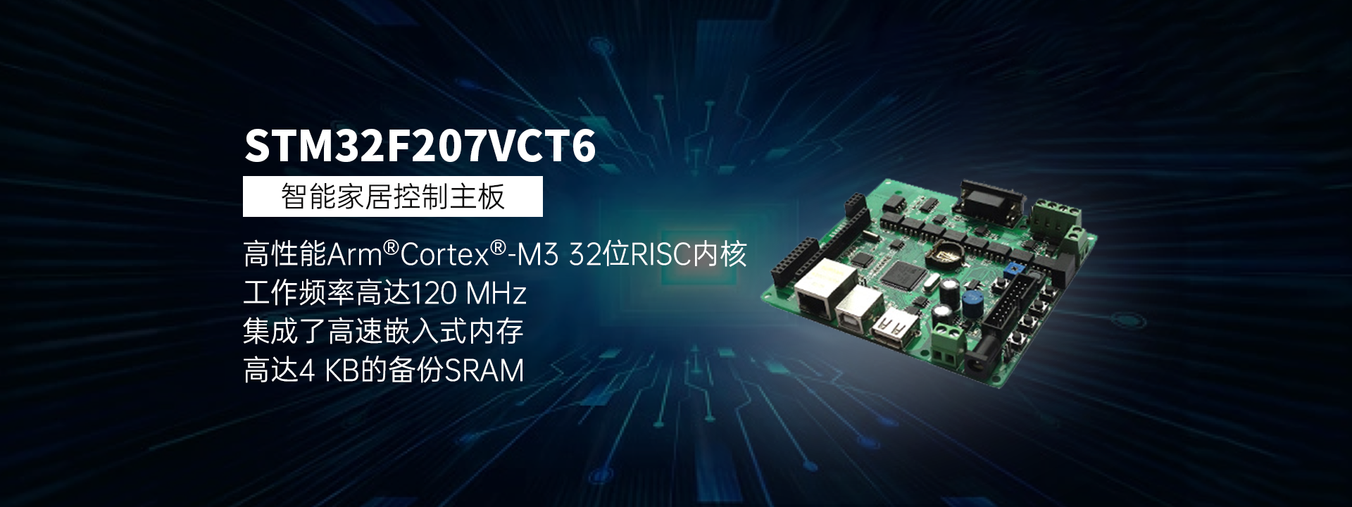 STM32F20x系列基于高性能Arm®Cortex®-M3 32位RISC内核,工作频率高达120 MHz。该系列集成了高速嵌入式内存(高达1 MB的闪存、高达128 KB的系统SRAM)、高达4 KB的备份SRAM,以及连接到两条APB总线、三条AHB总线和一个32位多AHB总线矩阵的一系列增强型I/O和外围设备。这些设备还具有自适应实时内存加速器(ART加速器)™) 这允许在CPU频率高达120 MHz的情况下从闪存中实现相当于0等待状态程序执行的性能。该性能已使用CoreMark®基准测试进行了验证。